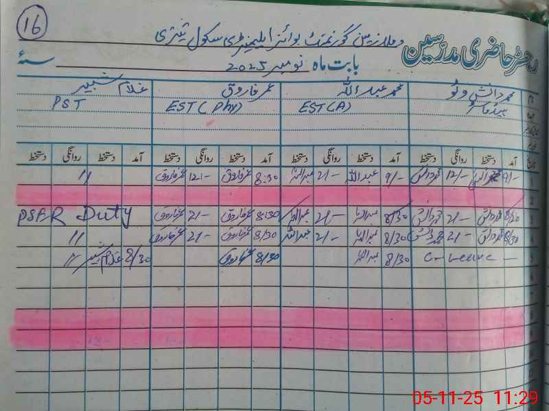 | CNIC | Full Name | Designation | R/C | Absence During Last Calender Month |