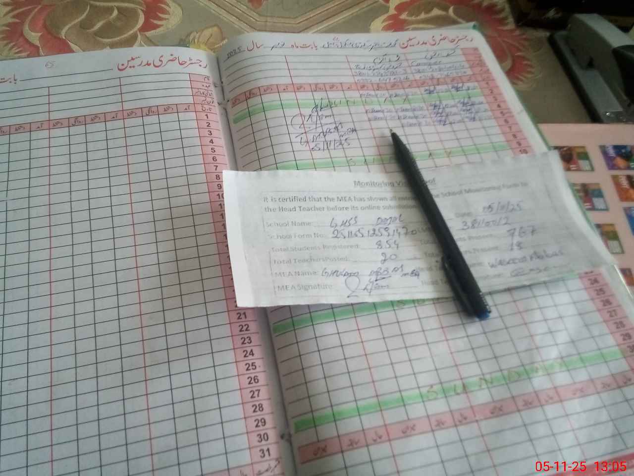 | Attendance Register | Head Teacher | MEA with School | Visit Proof |