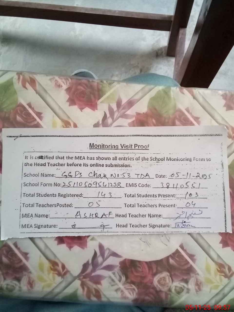 | EMIS Code: 38110551 | Name of School: GGPS CHAK NO.50 TDA | |||