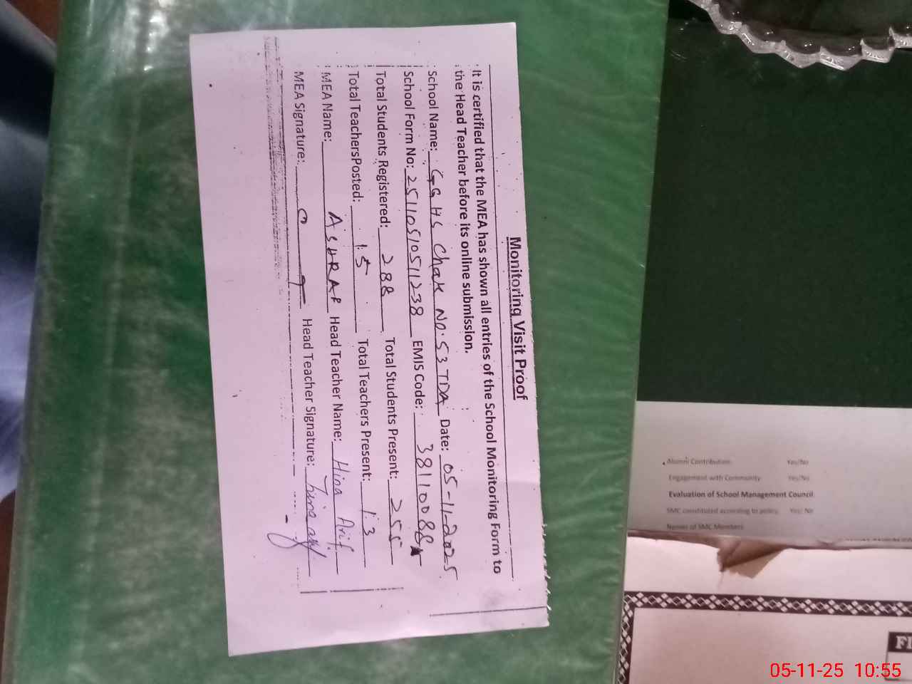 | EMIS Code: 38110088 | Name of School: GGHS CHAK NO.53/TDA | |||