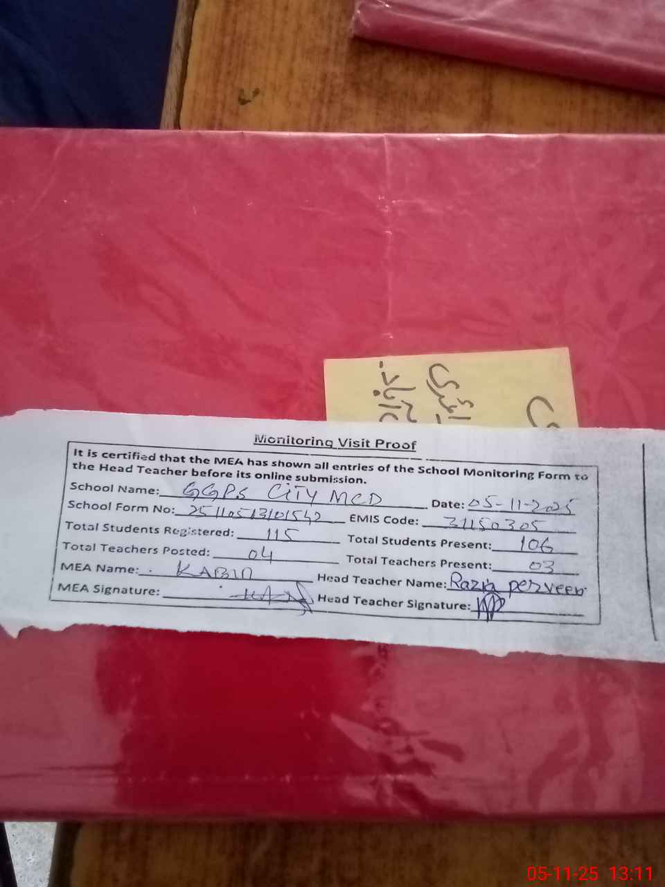 | EMIS Code: 31150305 | Name of School: GGPS CITY MINCHIN ABAD | |||