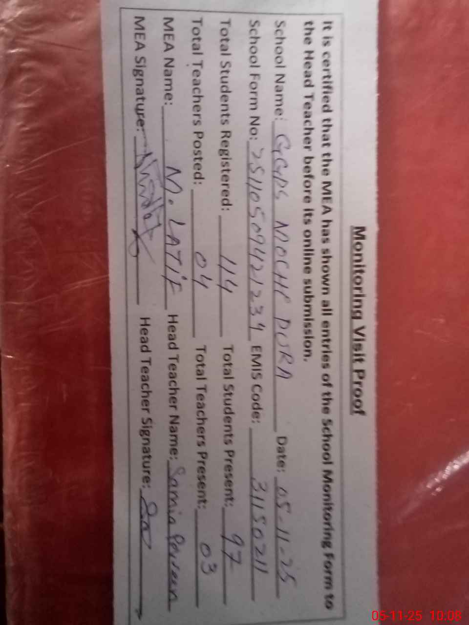 | EMIS Code: 31150211 | Name of School: GGPS MOCHI PURA | |||
