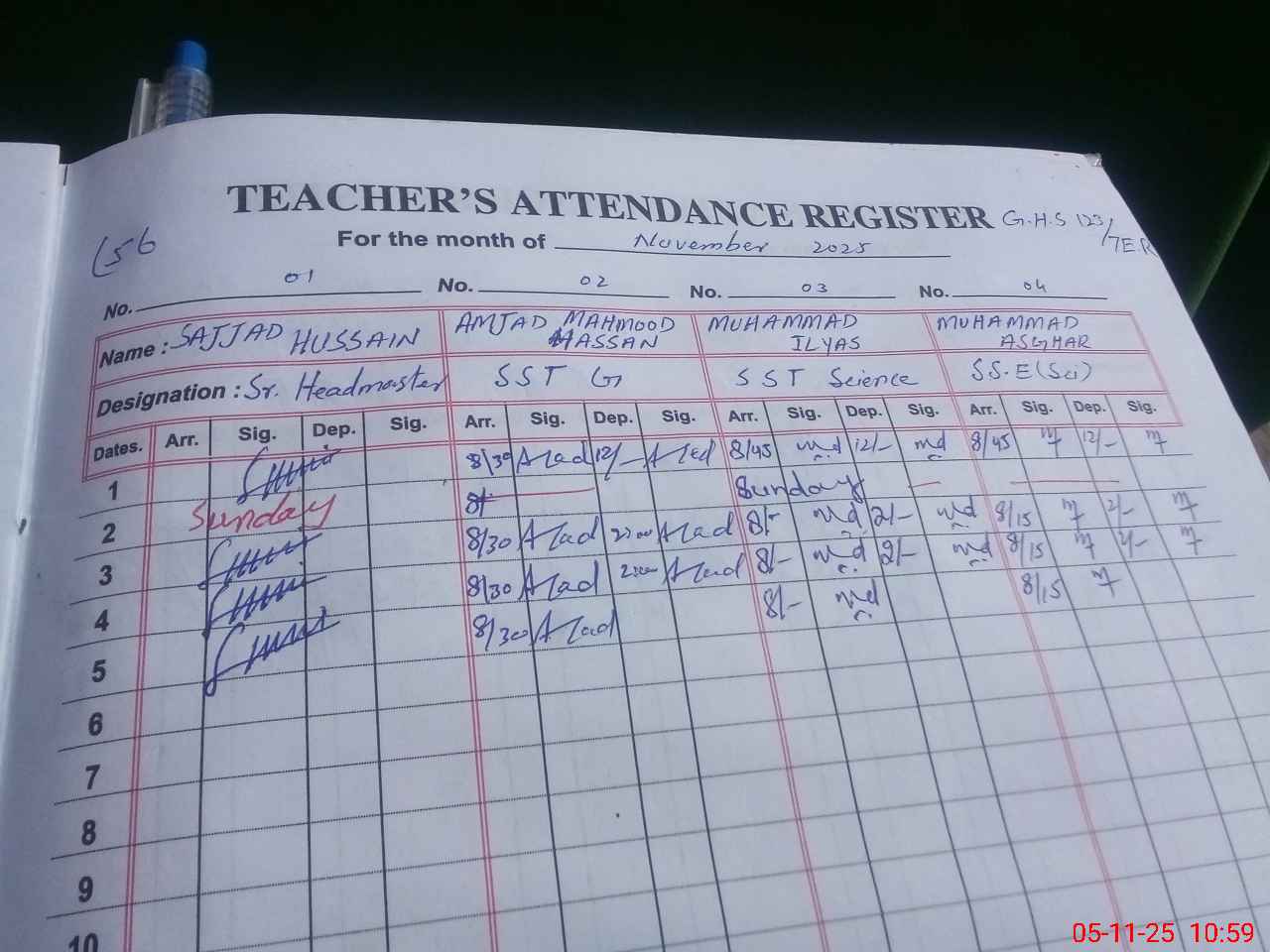 | Name: SA**** HU**** Designation: (School Headmaster's/Headmistress's) SR HEADMASTER Phone/Cell Number: 03**** |