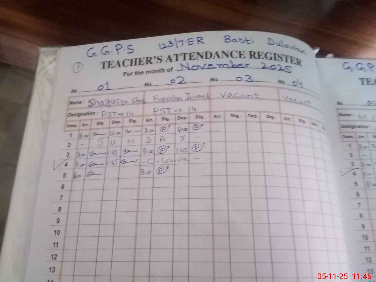 | Name: SH**** SH**** Designation: (School Headmaster's/Headmistress's) PST Phone/Cell Number: 03**** |