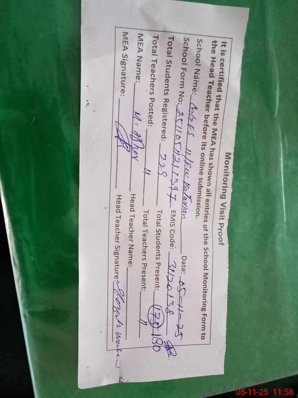 | EMIS Code: 31120138 | Name of School: GGES CHAK NO. 11/FW KATARIAN | |||