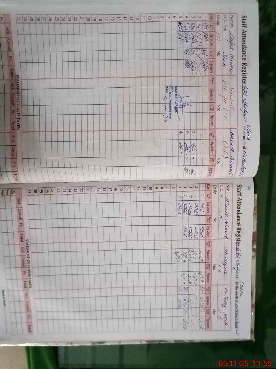| CNIC | Full Name | Designation | R/C | Absence During Last Calender Month |