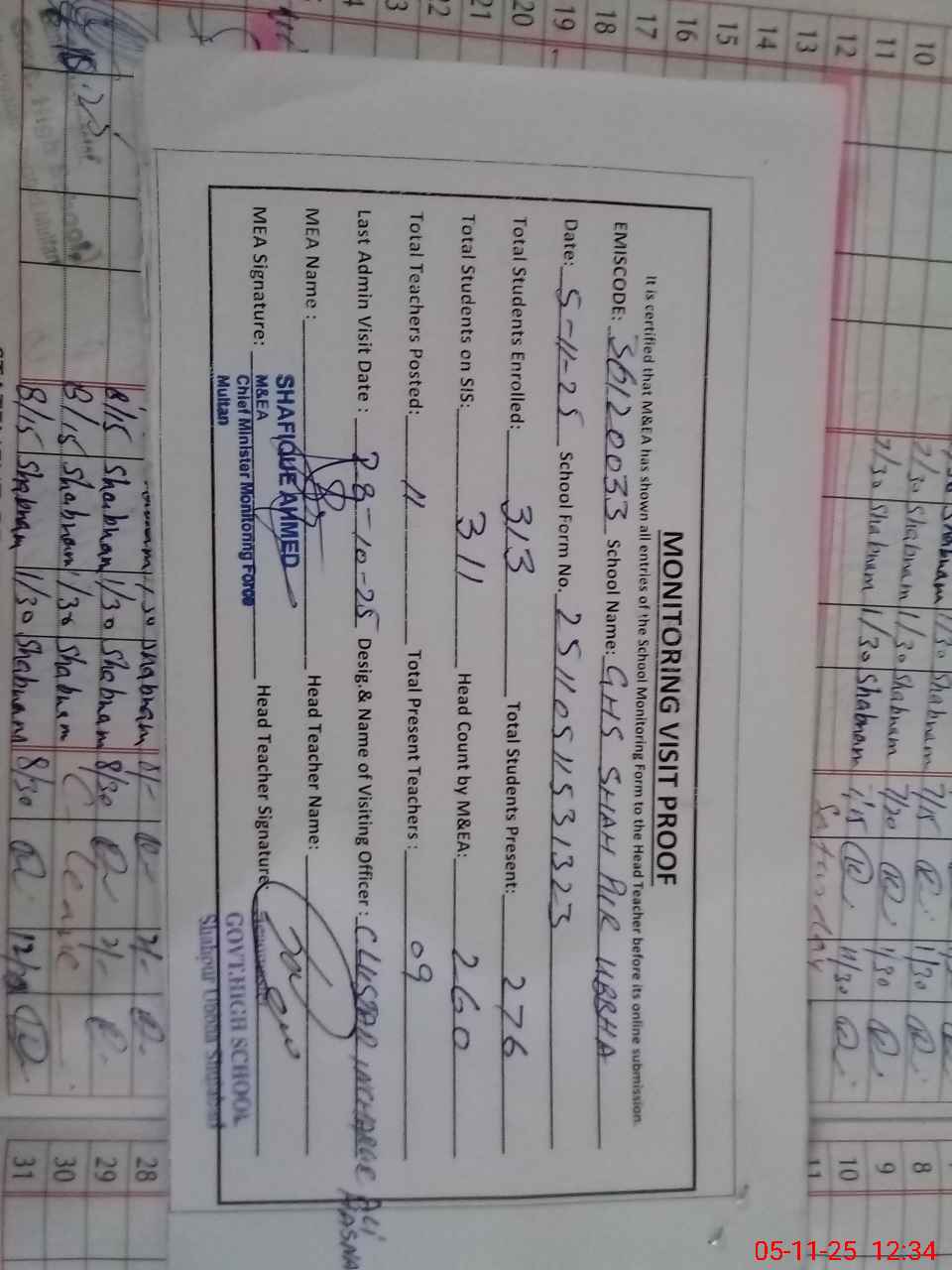 | EMIS Code: 36120033 | Name of School: GHS SHAH PUR UBBHA SHUJABAD | |||