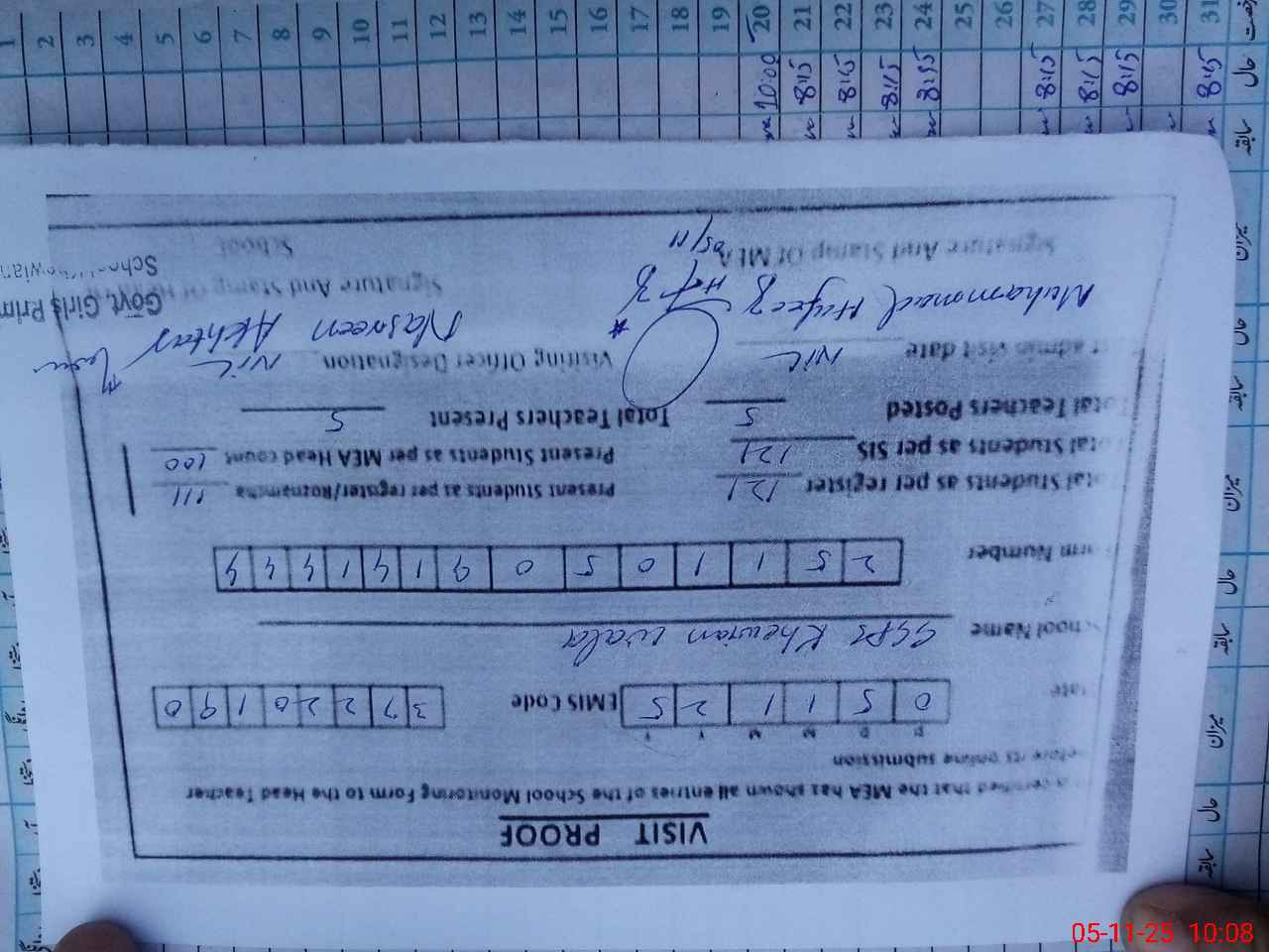 | Certified that this School was Inspected by the Undersigned MEA/DMO Today and the Information Stated Above is as Per Record. | |||||