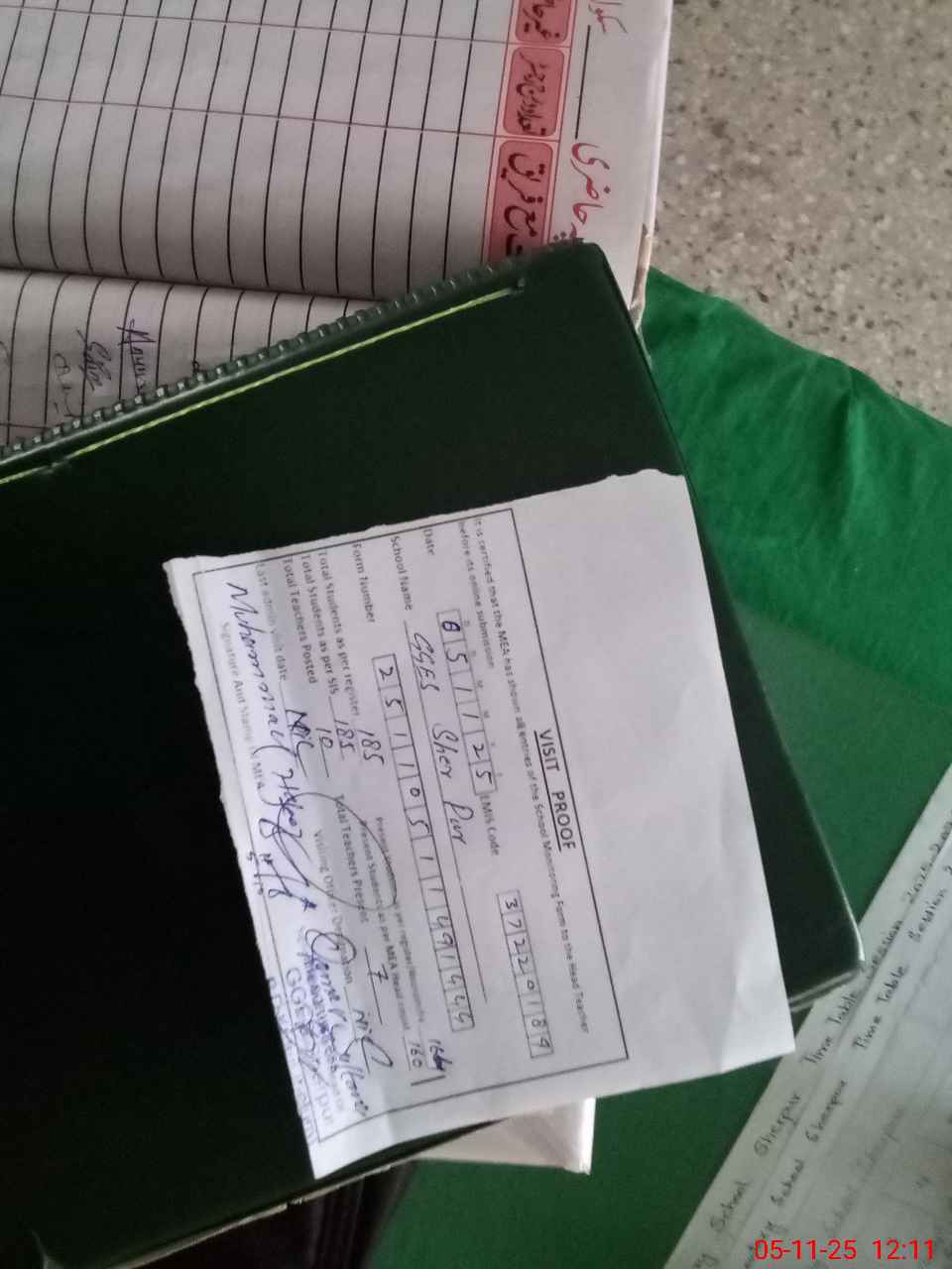 | Attendance Register | Head Teacher | MEA with School | Visit Proof |