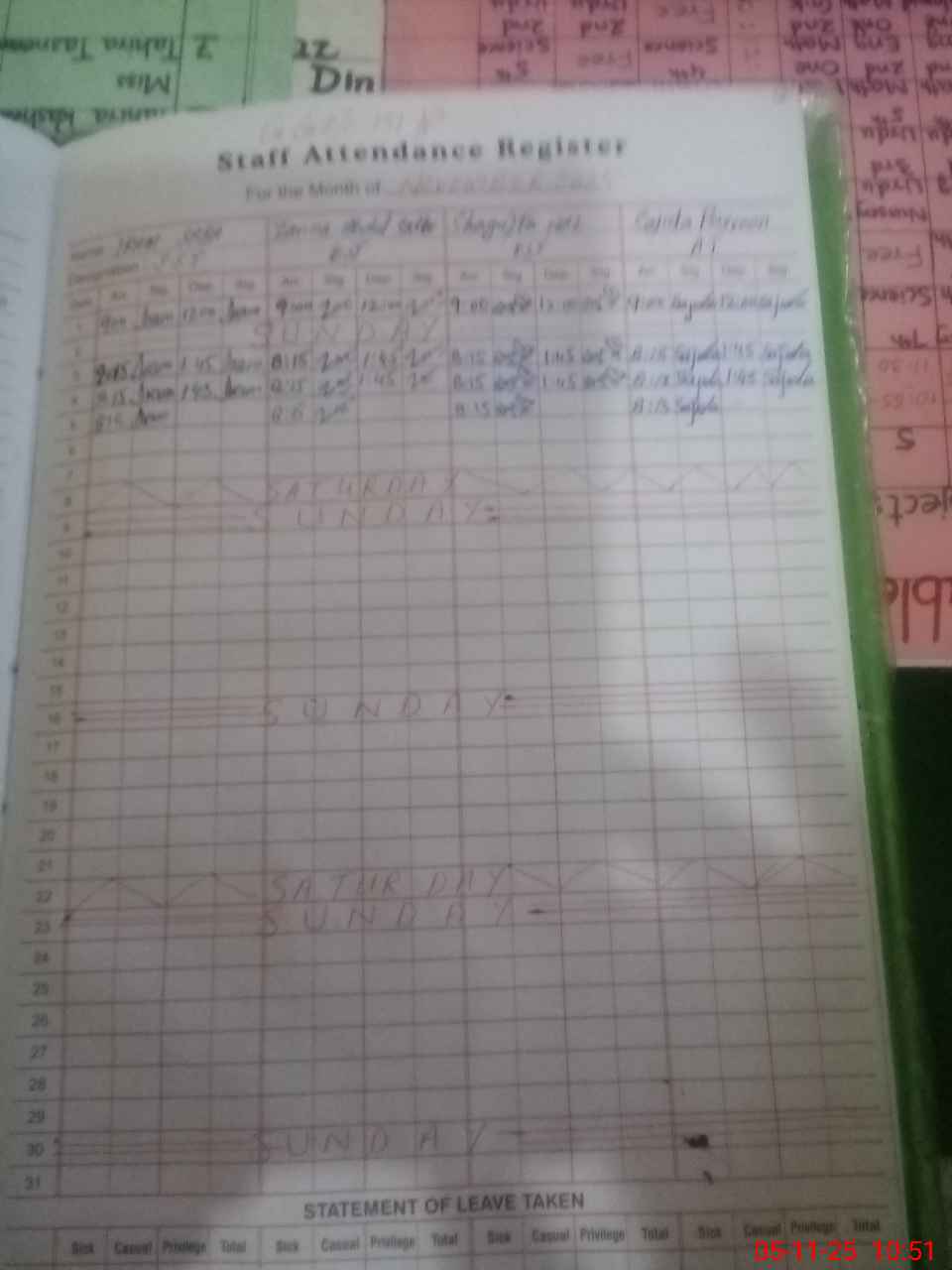 | No. of Students Present - Female | 35 | 0 | 25 | 25 | 22 | 30 | 25 | 22 | 27 | 30 | 24 | 265 | ||||