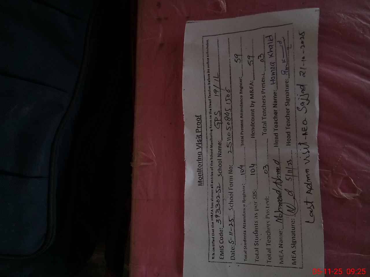 | Certified that this School was Inspected by the Undersigned MEA/DMO Today and the Information Stated Above is as Per Record. | |||||