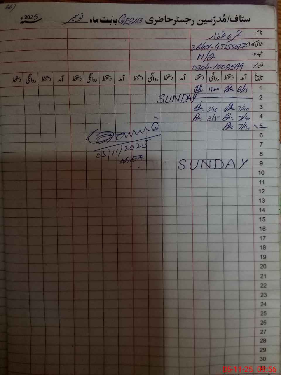 | Name: GH**** MU**** Designation: (School Headmaster's/Headmistress's) EST (GENERAL) Phone/Cell Number: 03**** |