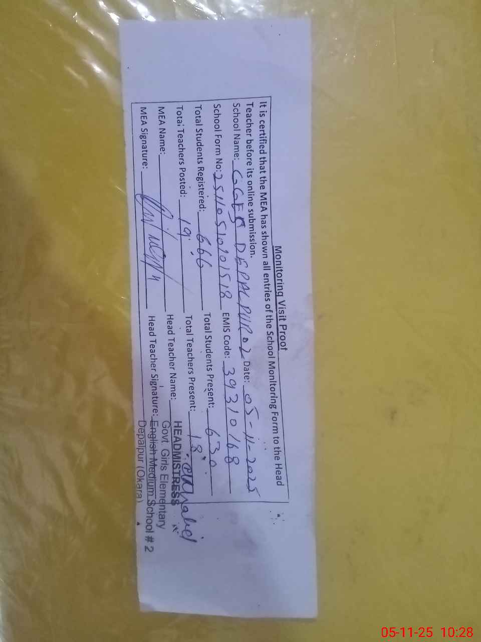 | EMIS Code: 39310168 | Name of School: GGES DEPALPUR NO 2 | |||