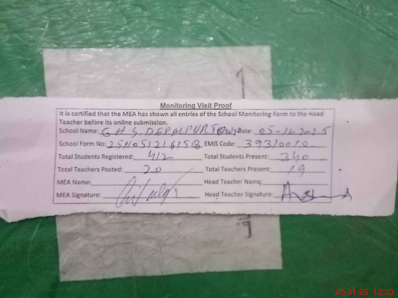 | EMIS Code: 39310010 | Name of School: GHS DEPALPUR TOWN | |||