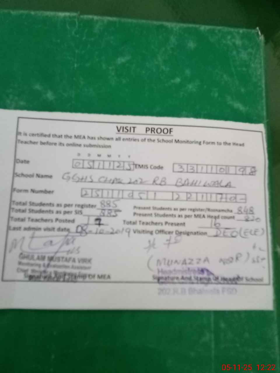 | EMIS Code: 33110198 | Name of School: GGHS CHAK 202 RB BAHAIWALA | |||