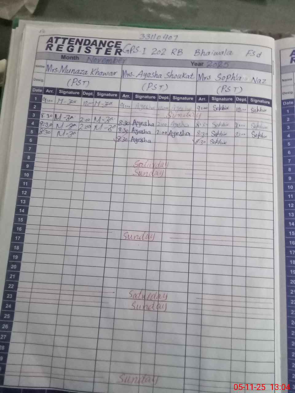 | Name: IR**** AR**** Designation: (School Headmaster's/Headmistress's) PST Phone/Cell Number: 03**** |
