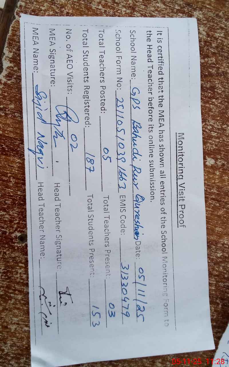 | EMIS Code: 31330479 | Name of School: GPS BAHAUDI PUR QURESHIAN | |||