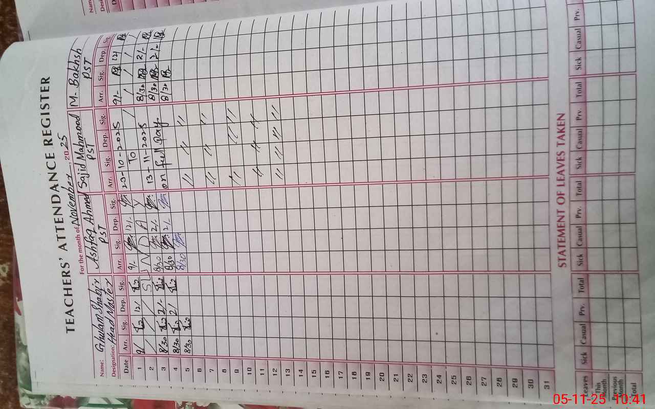 | Name: Gh**** Sh**** Designation: (School Headmaster's/Headmistress's) PST/PTC/JV Phone/Cell Number: 03**** |