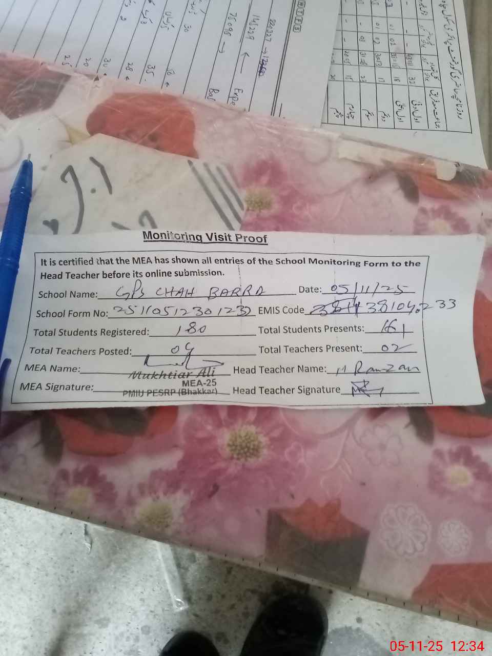 | EMIS Code: 38140233 | Name of School: GPS CHAH BARRA | |||