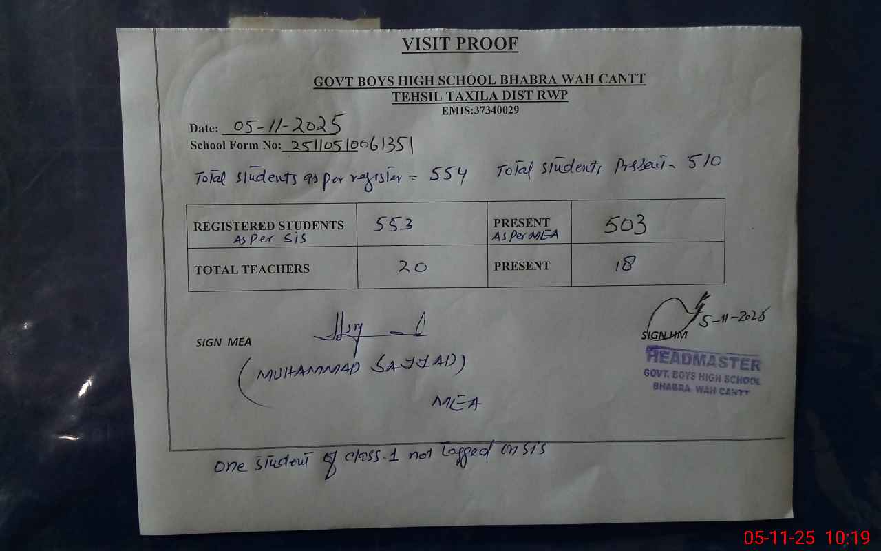 | EMIS Code: 37340029 | Name of School: GHS BHABRA WAH CANTT | |||