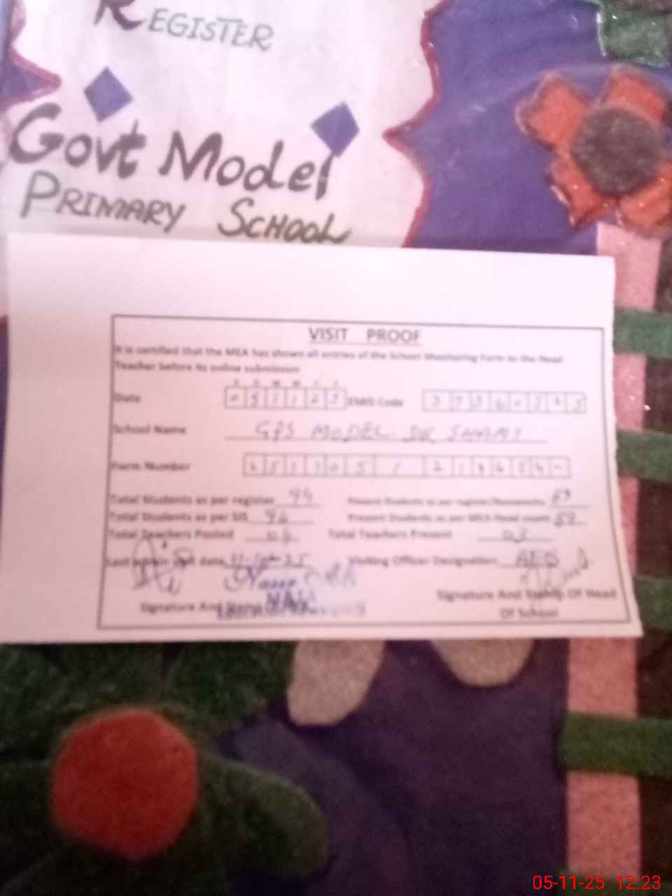 | Attendance Register | Head Teacher | MEA with School | Visit Proof |