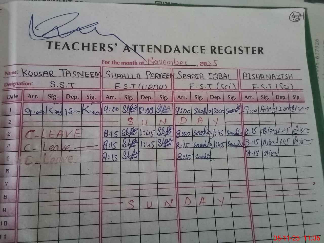 | Total no. of Classrooms: 11 No. of Classrooms Used for Teaching: 5 No. of Classrooms Storing Old Furniture, FTBs, etc: 0Comments if Any: Sir teachers and students attendance on sis not carried out Boundary Wall is partially Upper portion of the school building 05 class rooms are dangerous Head Teacher is on leave last 03 days |