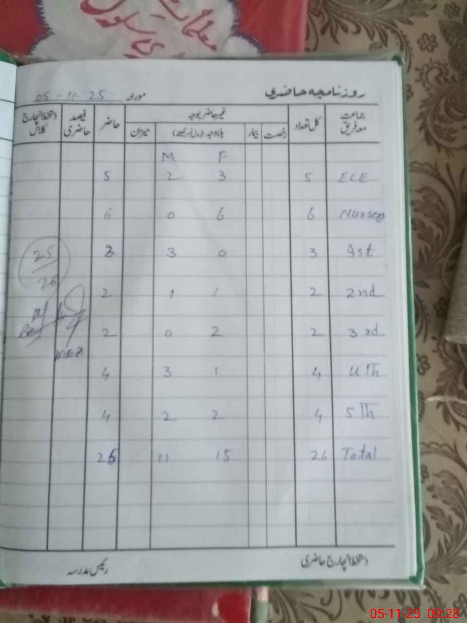 | Total Students Present | 5 | 0 | 6 | 2 | 2 | 2 | 4 | 4 | 25 | |||||||