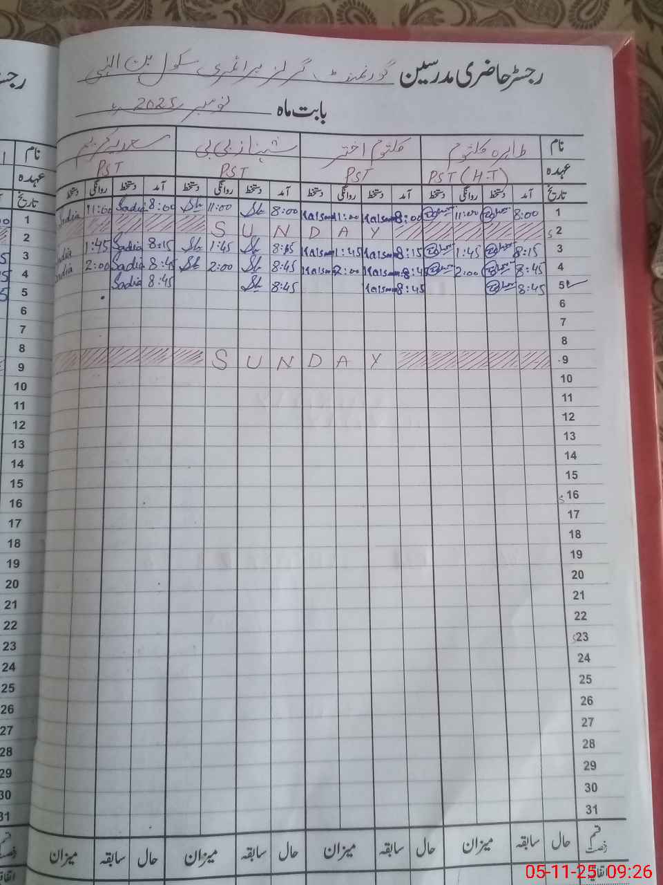 | CNIC | Full Name | Designation | R/C | Absence During Last Calender Month |
