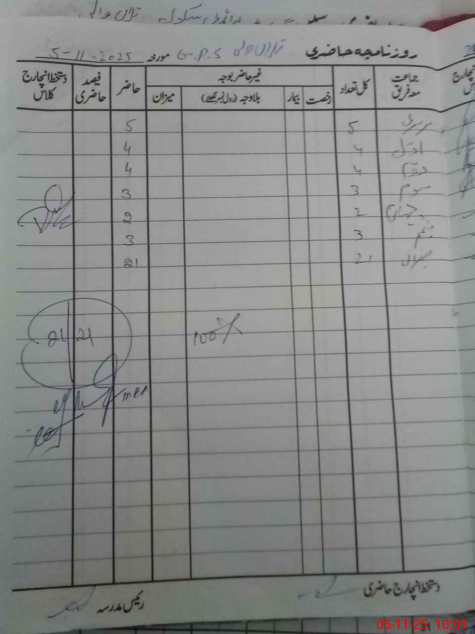 | Total Students Present | 0 | 0 | 5 | 4 | 4 | 3 | 2 | 3 | 21 | |||||||
