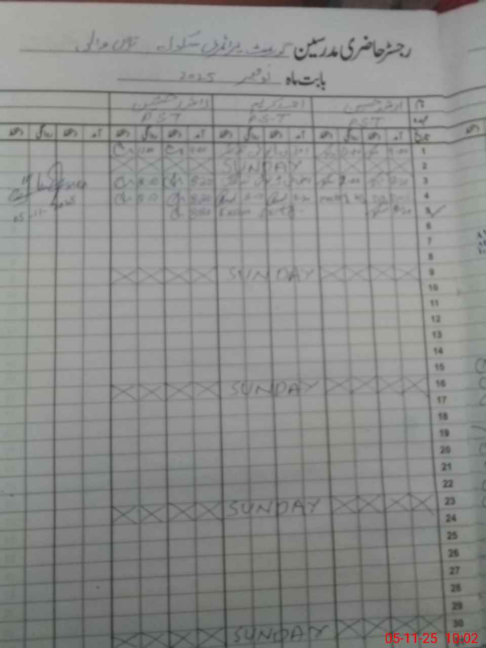 | CNIC | Full Name | Designation | R/C | Absence During Last Calender Month |