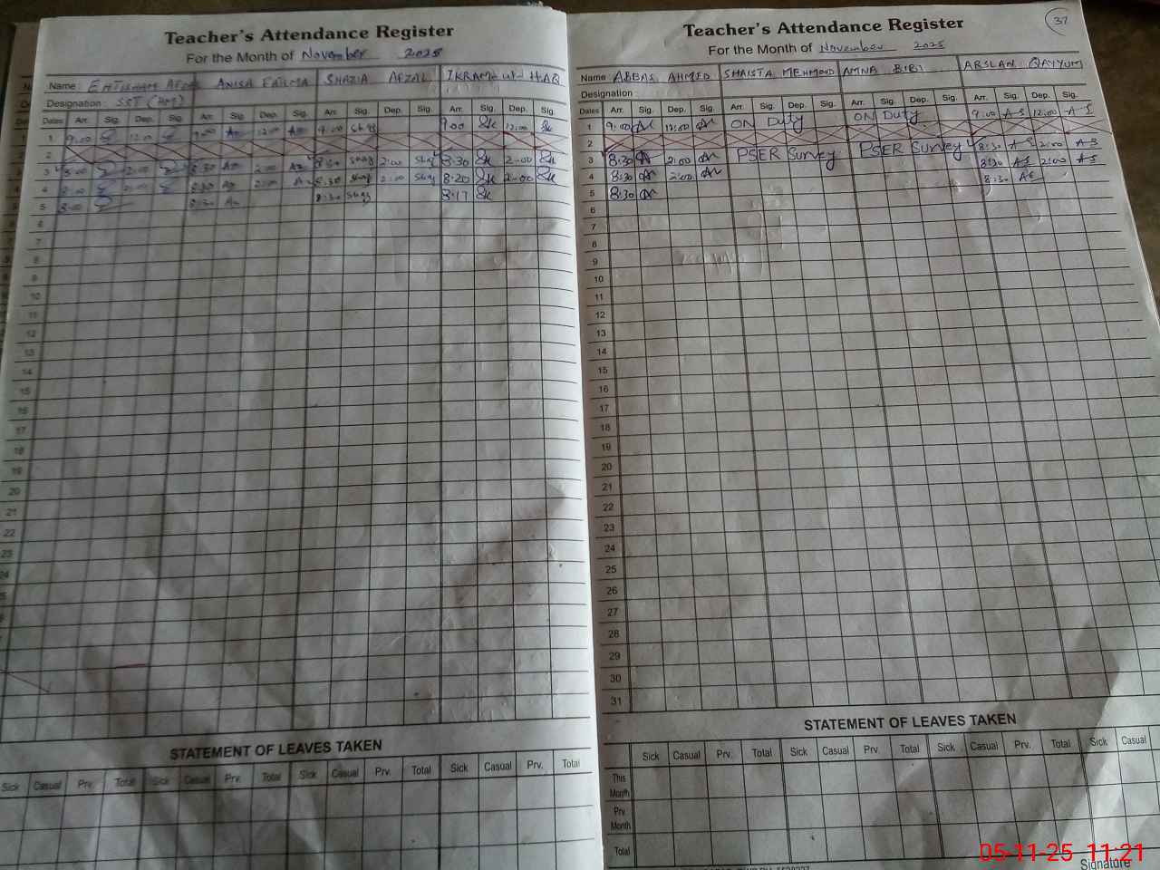 | Remarks (Use Separate Page if Required): NSB record not updated in pmiu and sis both apps Students of class 6 are partially updated 03 students have left school which are being shown in pmiu app Enrollment as per Register is 227 as per SIS app is 231 while as per SIS in PMIU app is 237 | |||||