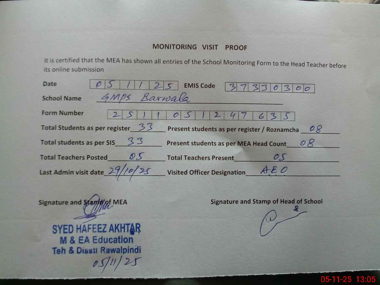 | EMIS Code: 37330300 | Name of School: GMPS BARWALA | |||
