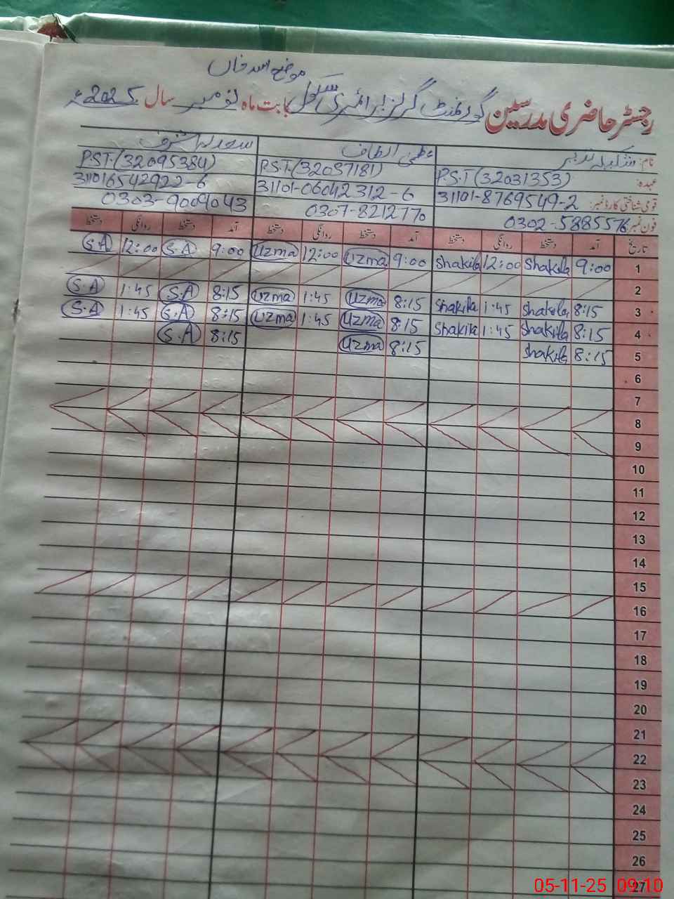 | Name: SH**** NA**** Designation: (School Headmaster's/Headmistress's) PST Phone/Cell Number: 03**** |