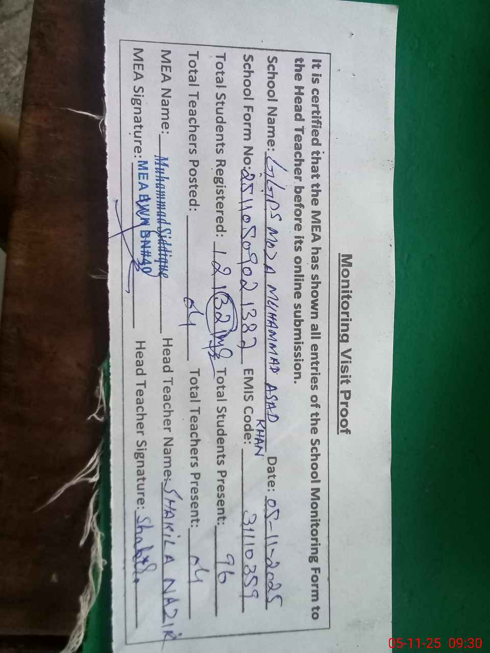 | EMIS Code: 31110359 | Name of School: GGPS MOZA MUHAMMAD ASAD KHAN | |||