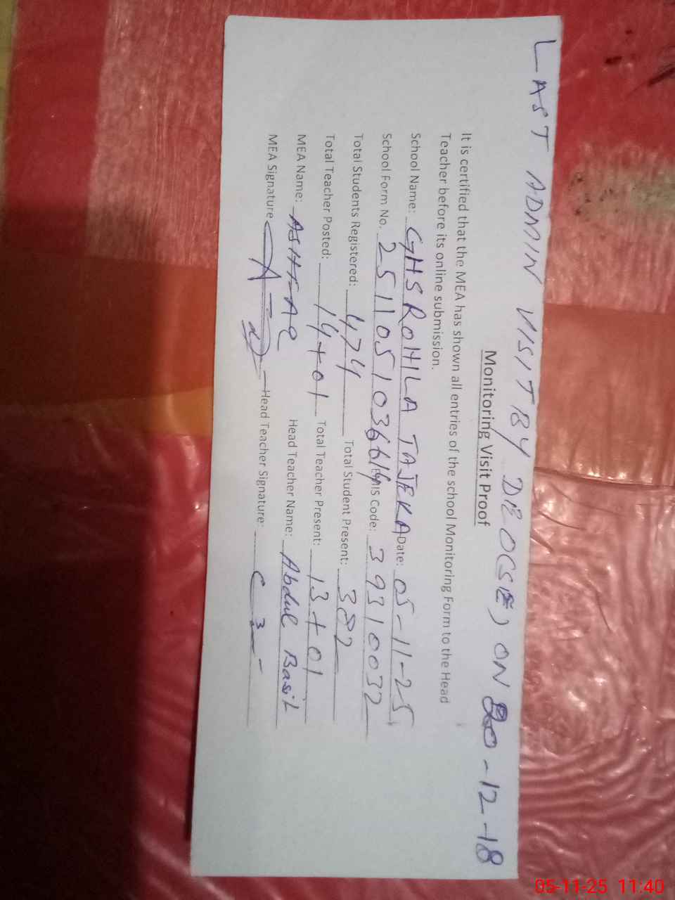 | EMIS Code: 39310032 | Name of School: GHS ROHELA TAJEKA | |||