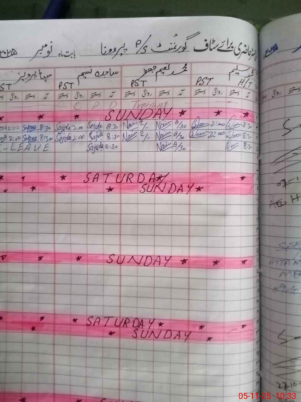 | Leave | Duty | Absent | Maternity | Medical | Ex- Pak |