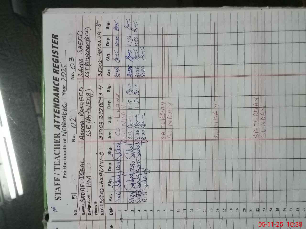 | CNIC | Full Name | Designation | R/C | Absence During Last Calender Month |