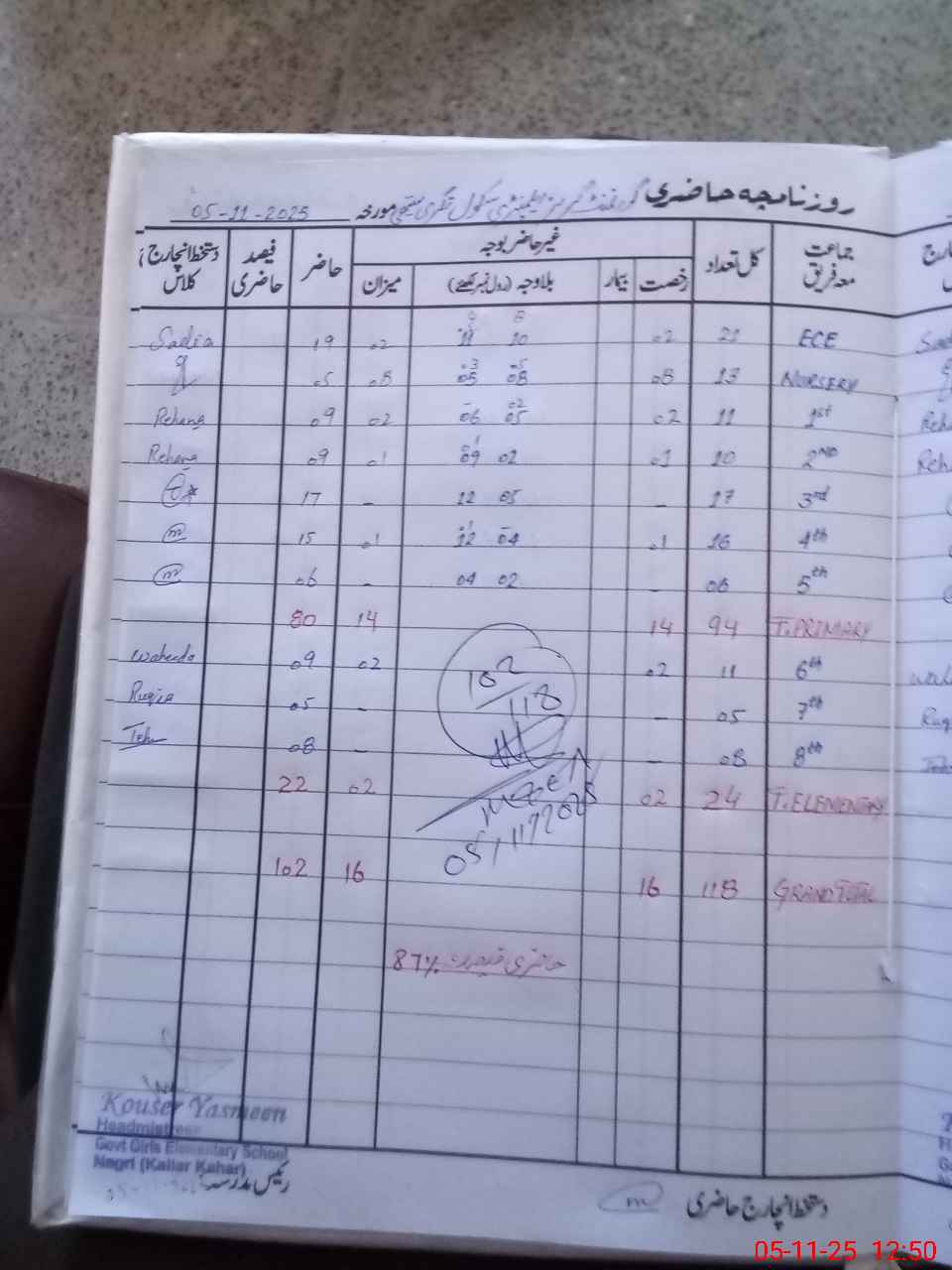 | District: CHAKWAL | Tehsil: KALLAR KAHAR | Markaz: KALLAR KAHAR-FEMALE | Level: Middle | |