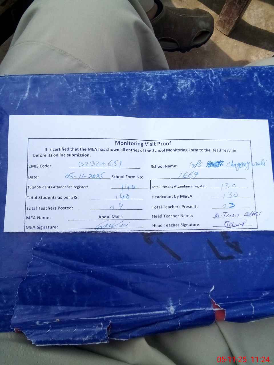 | EMIS Code: 32320651 | Name of School: GPS CHAJRAY WALI | |||