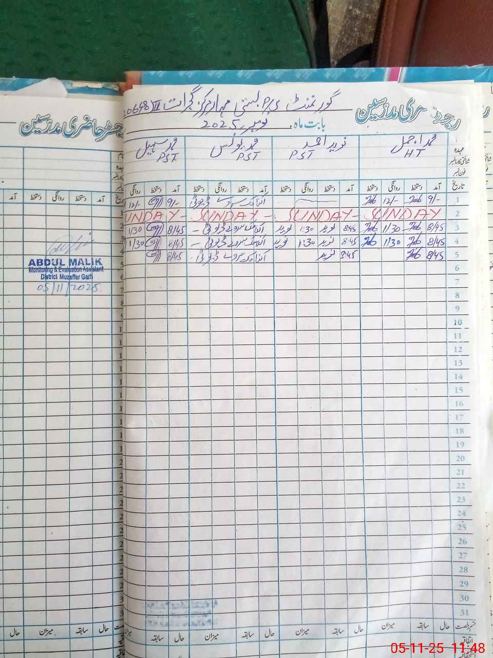 | District: KOT ADU | Tehsil: KOT ADU | Markaz: GUJRAT-II-MALE | Level: Primary | |