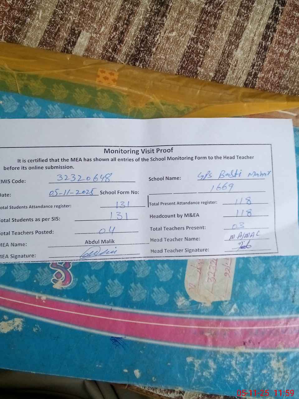 | EMIS Code: 32320648 | Name of School: GPS BASTI MAHAR | |||
