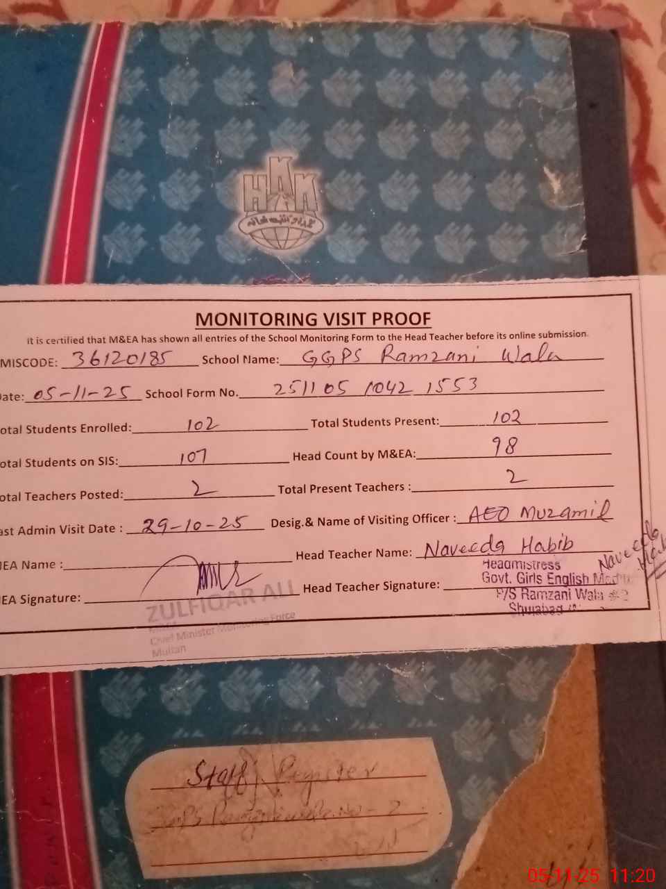 | EMIS Code: 36120185 | Name of School: GGPS RAMZANI WALA NO.2 | |||