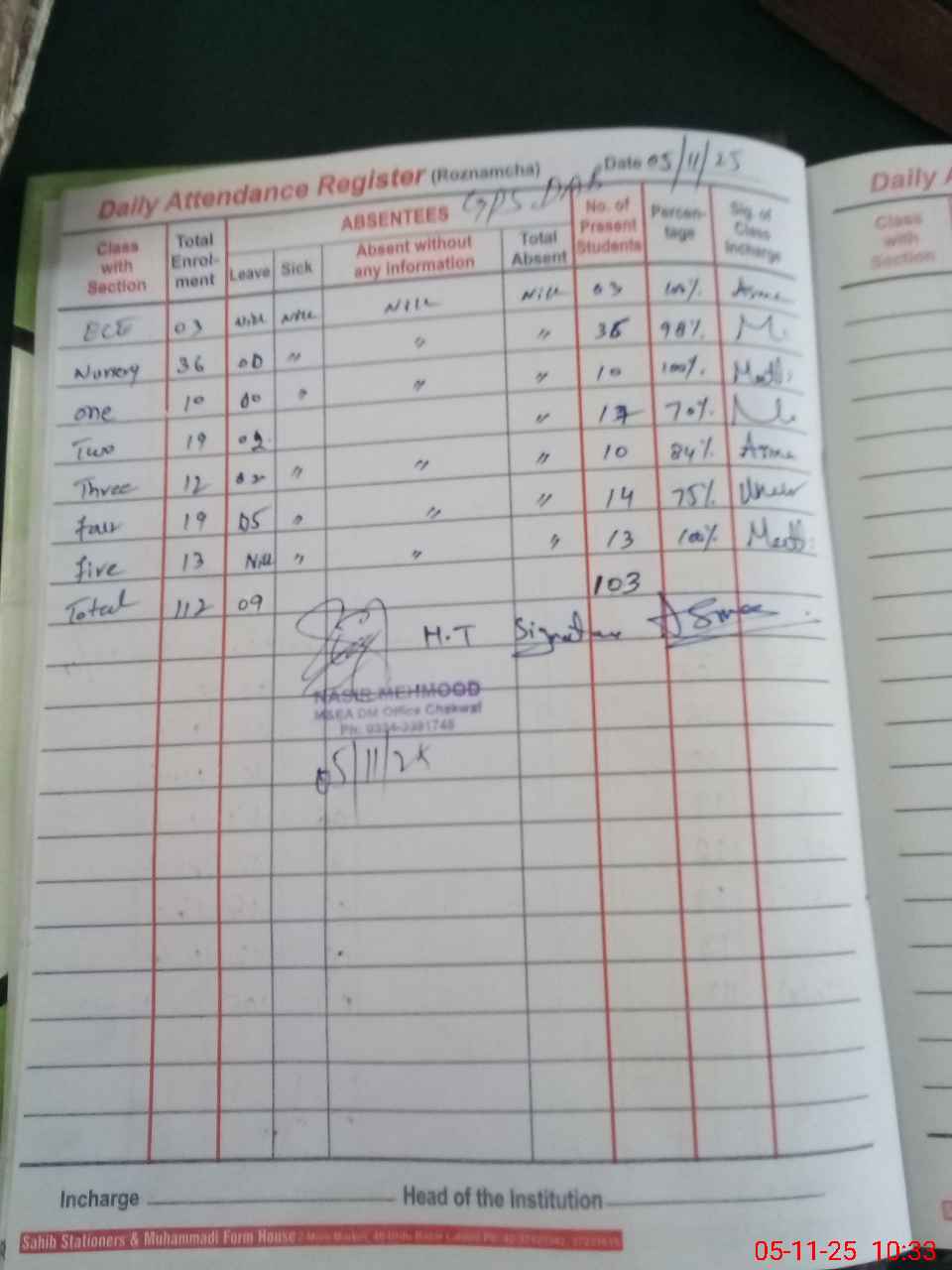 | Attendance Register | Head Teacher | MEA with School | Visit Proof |