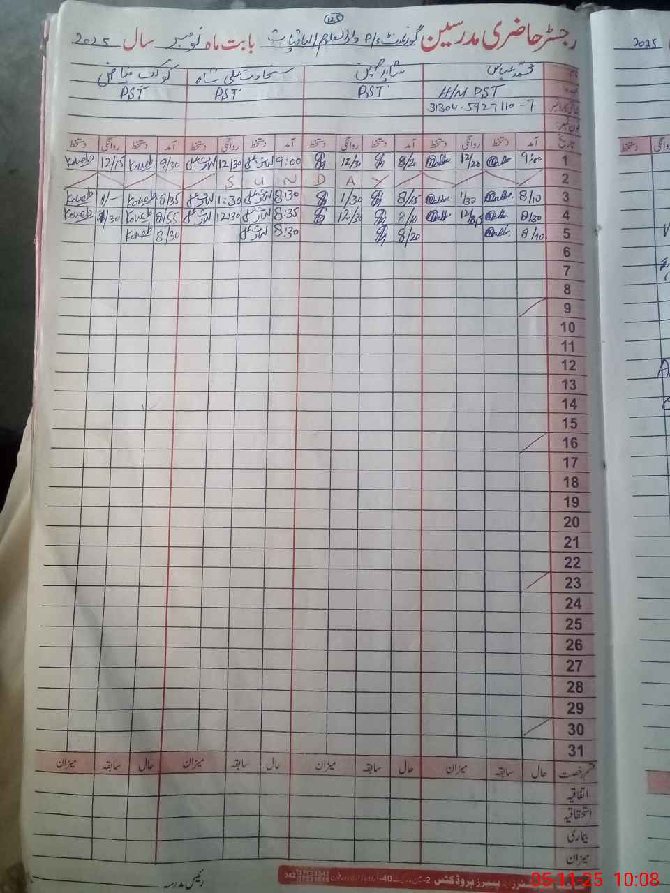| CNIC | Full Name | Designation | R/C | Absence During Last Calender Month |