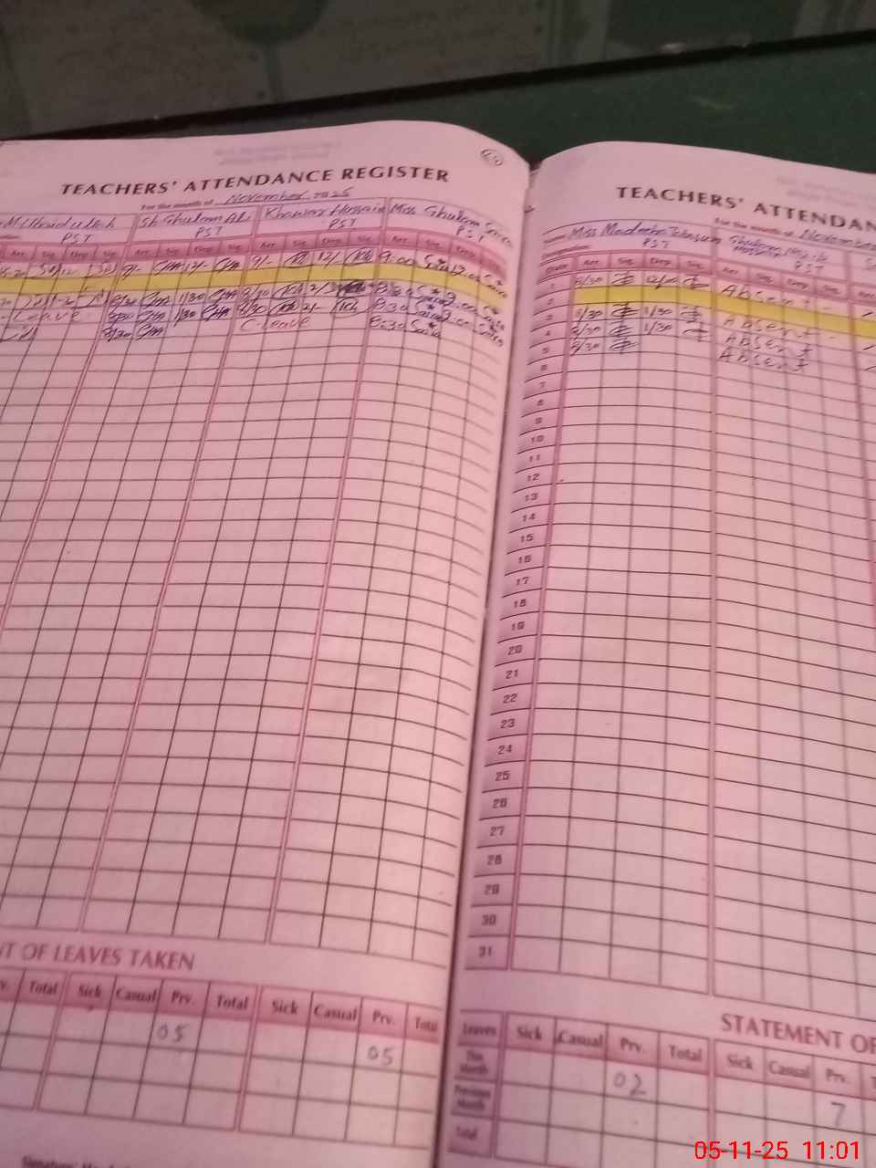 | Leave | Duty | Absent | Maternity | Medical | Ex- Pak |