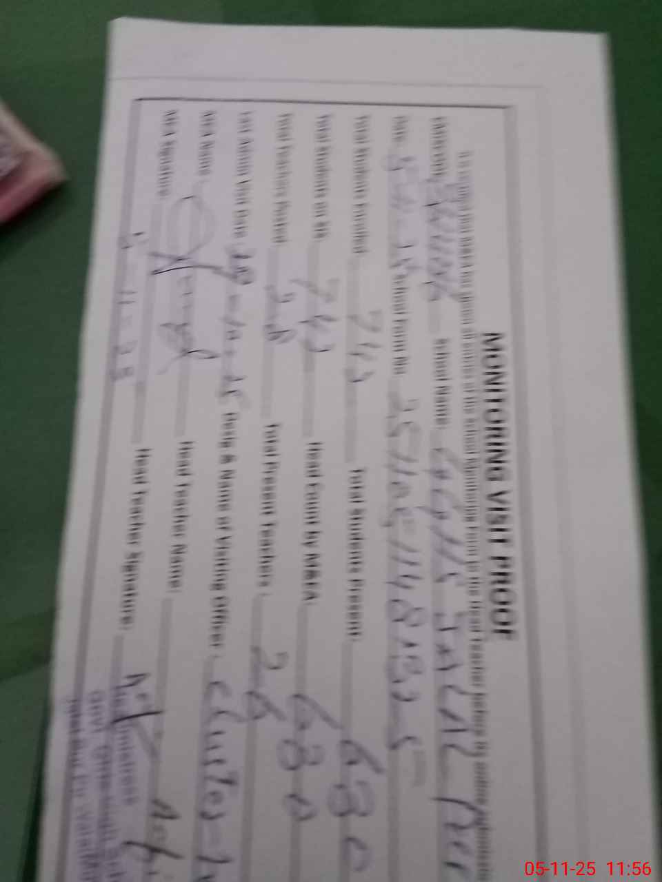 | Attendance Register | Head Teacher | MEA with School | Visit Proof |