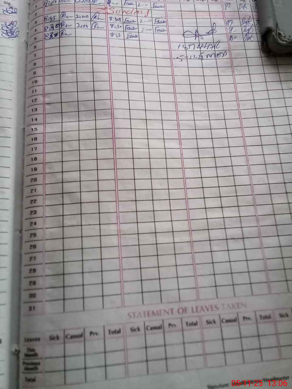 | CNIC | Full Name | Designation | R/C | Absence During Last Calender Month |