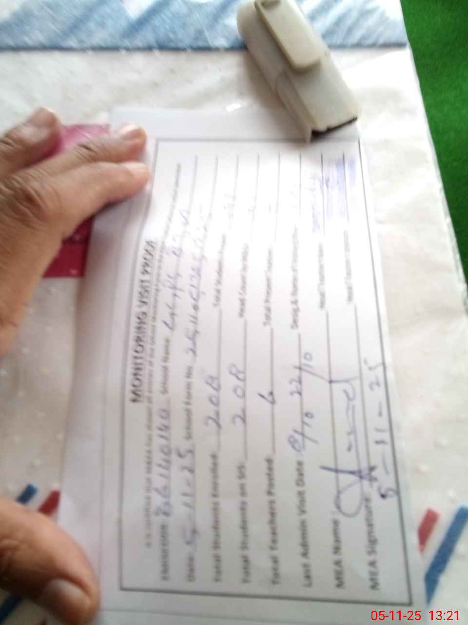 | Attendance Register | Head Teacher | MEA with School | Visit Proof |