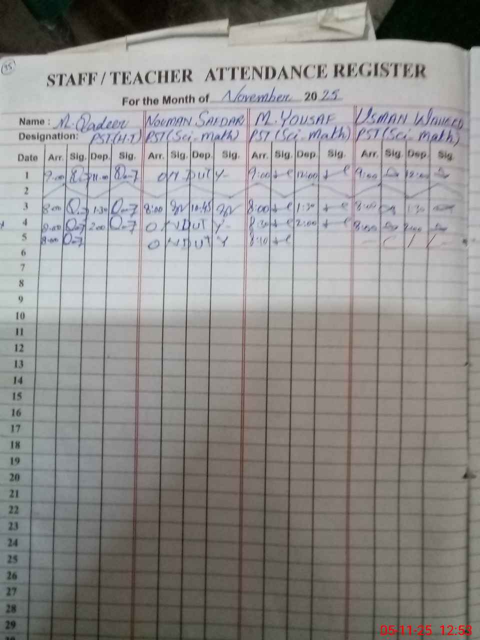| 37**** | Us**** Wa**** | ESE Science/Maths | Regular | 0 | 0 | 0 | 0 | 0 | 0 | 0 | 0 | 0 | Casual |