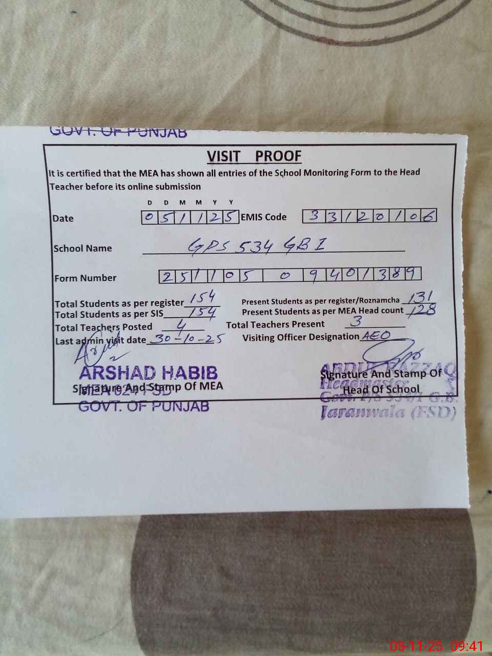 | EMIS Code: 33120106 | Name of School: GPS CHAK 534 GB I | |||